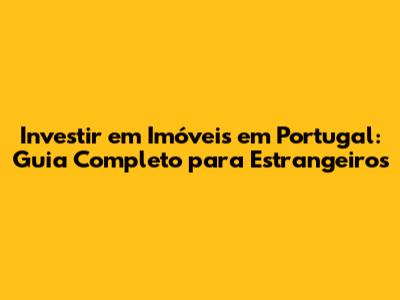 Investir Em Imóveis Em Portugal: Guia Completo Para Estrangeiros