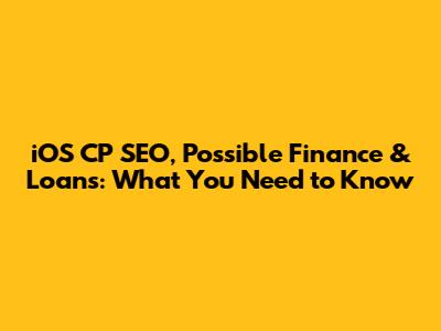 IOS CP SEO, Possible Finance & Loans: What You Need To Know