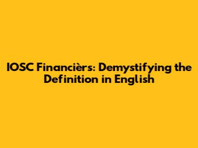 IOSC Financièrs: Demystifying The Definition In English