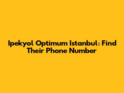 Ipekyol Optimum Istanbul: Find Their Phone Number