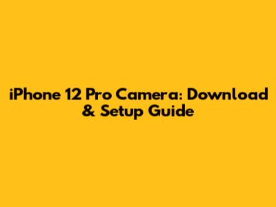 IPhone 12 Pro Camera: Download & Setup Guide