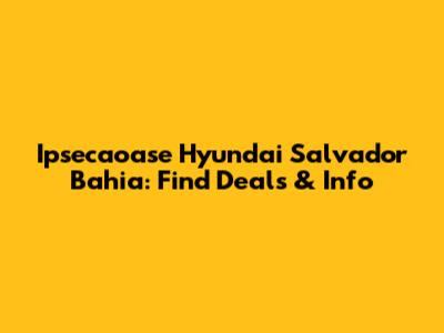 Ipsecaoase Hyundai Salvador Bahia: Find Deals & Info