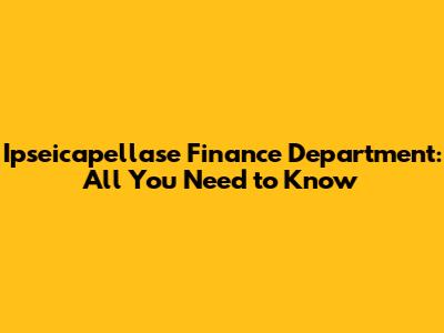 Ipseicapellase Finance Department: All You Need To Know