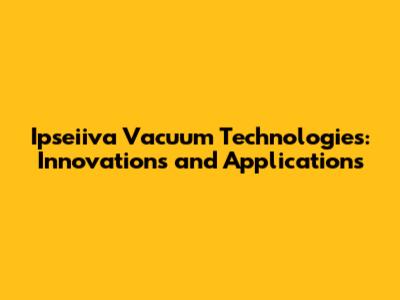 Ipseiiva Vacuum Technologies: Innovations And Applications