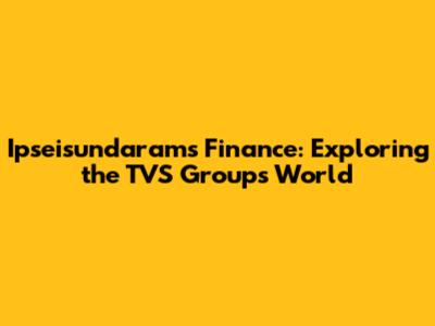 Ipseisundaram's Finance: Exploring The TVS Group's World