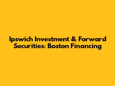 Let's dive into the world of Ipswich Investment Management and Forward Securities, specifically focusing on their financing activities in Boston. This is a crucial area for businesses looking to grow and expand, and understanding the ins and outs of these investment firms can be a game-changer. Ipswich Investment Management, known for its strategic approach to investment, plays a significant role in Boston's financial landscape. Their expertise spans various sectors, providing tailored financial solutions to companies aiming for sustainable growth. Guys, if you're seeking capital or just trying to understand the investment ecosystem in Boston, knowing what Ipswich brings to the table is super important.
