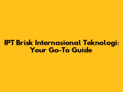 IPT Brisk: Your Guide To International Technology
