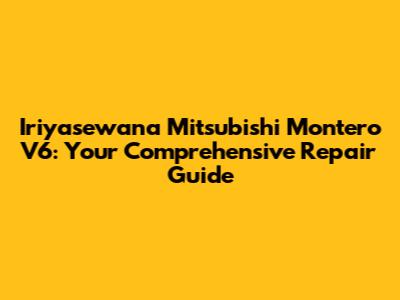 Iriyasewana Mitsubishi Montero V6: Your Repair Guide