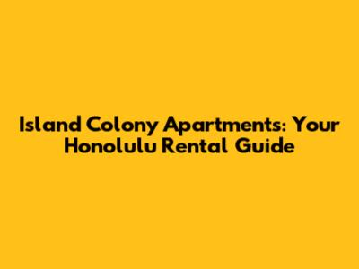 Island Colony Apartments: Your Honolulu Rental Guide