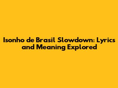 Isonho De Brasil Slowdown: Lyrics And Meaning Explored