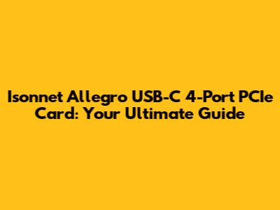 Hey everyone! Today, we're diving deep into the Isonnet Allegro USB-C 4-Port PCIe card. If you're looking to supercharge your computer with blazing-fast USB-C connectivity, then you've come to the right place. This bad boy is a PCIe expansion card, meaning it plugs directly into your motherboard to provide additional USB-C ports. This is super helpful if your computer doesn't have enough USB-C ports, or if you need faster transfer speeds for your external devices. We'll be covering everything from what it is, what it does, and how it can benefit you. Buckle up, and let's get started!