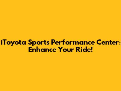 Hey guys! Ever wondered how to take your Toyota from reliable to absolutely exhilarating? Let’s dive into the world of iToyota Sports Performance Centers, where you can unlock the true potential of your vehicle. Whether you're looking for enhanced handling, increased power, or a sportier look, these centers offer a range of upgrades and services to transform your driving experience. This isn't just about adding a few fancy parts; it's about optimizing your Toyota for peak performance.