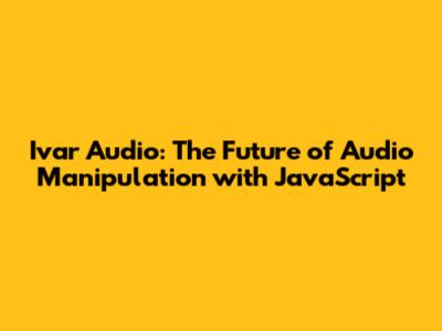 Ivar Audio: Unleashing The Power Of JavaScript For Audio