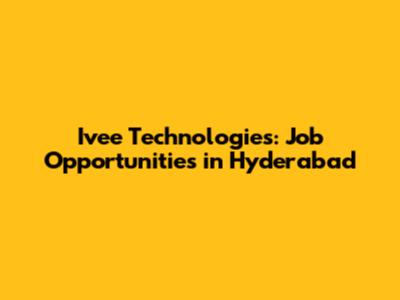 Ivee Technologies: Job Opportunities In Hyderabad