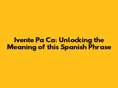 Ivente Pa' Ca: Unlocking The Meaning Of This Spanish Phrase