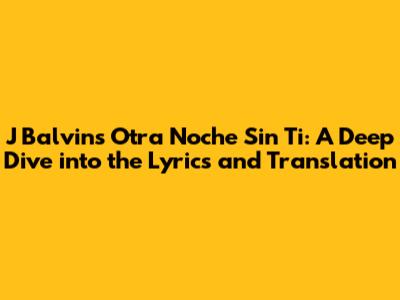 Hey music lovers! Today, we're diving deep into the emotional world of J Balvin's hit song, "Otra Noche Sin Ti." This track has been on repeat for so many of us, and if you've ever wondered what those heartfelt Spanish lyrics really mean, you've come to the right place. We're going to break down the song, explore its themes, and give you a clear English translation so you can sing along with every word and truly feel the emotion behind it. J Balvin, known for his infectious reggaeton beats, often infuses his music with a vulnerability that resonates deeply, and "Otra Noche Sin Ti" is a prime example of this.