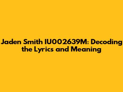 Jaden Smith IU002639M: Decoding The Lyrics And Meaning