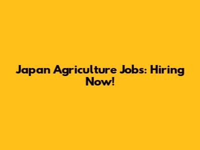 Japan Agriculture Jobs: Hiring Now!