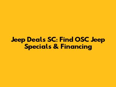 Hey guys! Are you on the hunt for a new Jeep in South Carolina? Maybe you've heard about some sweet deals from OSC Jeep and you're wondering how to snag one. Well, you've come to the right place! Let's dive into the world of OSC Jeep financing specials and how you can drive off the lot with the Jeep of your dreams without breaking the bank.