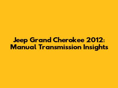 Hey guys! Let's dive into the world of the Jeep Grand Cherokee 2012 and explore some insights. Specifically, we're going to be focusing on the manual transmission aspects, even though they're not as common as the automatic versions. Whether you're a Jeep enthusiast, a potential buyer, or just curious about this model, you're in the right place.