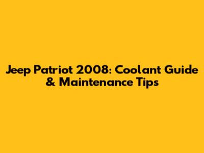 Jeep Patriot 2008: Coolant Guide & Maintenance Tips