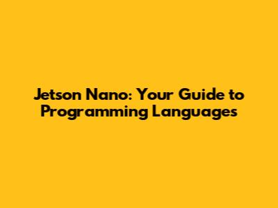 Jetson Nano: Your Guide To Programming Languages