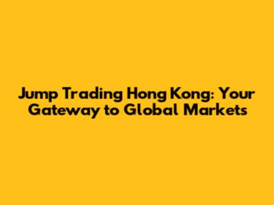 Jump Trading Hong Kong: Your Gateway To Global Markets