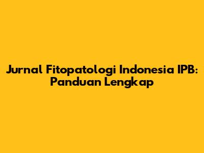 Jurnal Fitopatologi Indonesia IPB: Panduan Lengkap