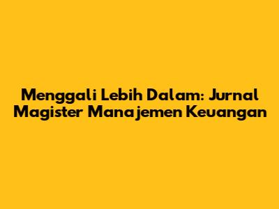 Tentu, mari kita buat artikel yang menarik seputar Jurnal Magister Manajemen Keuangan. Artikel ini akan mengupas tuntas seluk-beluknya, menjadikannya sumber informasi yang berharga bagi para akademisi, praktisi, dan siapa saja yang tertarik pada dunia keuangan.