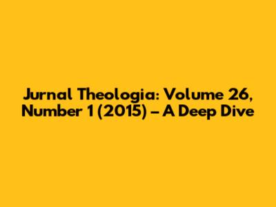Hey everyone! Today, we're taking a look at Jurnal Theologia, specifically Volume 26, Number 1 from 2015. This journal is a treasure trove for anyone interested in theology, offering a range of perspectives and deep dives into various theological topics. It's like a theological buffet, right? You've got different dishes to sample, each with its own flavor and ingredients. So, let's explore what this particular issue has to offer. We'll be breaking down some of the key articles, discussing the main themes, and giving you a good overview of the journal's content. Think of it as your friendly guide to navigating the complex and fascinating world of theological thought. Whether you're a seasoned theologian, a student, or simply someone curious about faith and ideas, this is for you. Get ready to have your mind sparked and your perspectives broadened as we journey into the heart of this theological journal! Buckle up, and let's get started!