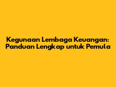 Kegunaan Lembaga Keuangan: Panduan Lengkap Untuk Pemula