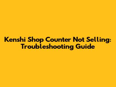 Kenshi Shop Counter Not Selling: Troubleshooting Guide