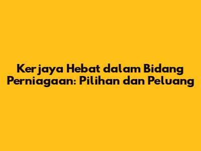 Kerjaya Hebat Dalam Bidang Perniagaan: Pilihan Dan Peluang
