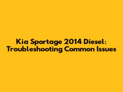Kia Sportage 2014 Diesel: Troubleshooting Common Issues
