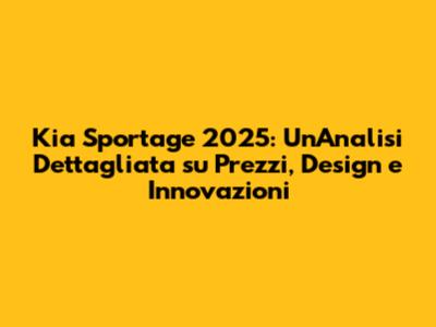 Ciao a tutti, appassionati di auto! Siete pronti a scoprire tutto quello che c'è da sapere sulla Kia Sportage 2025? In questo articolo, ci immergeremo nel mondo di uno dei SUV più amati, esplorando le ipotesi sui prezzi, le ultime novità sul design e le innovazioni tecnologiche che potremmo aspettarci. Preparatevi a un viaggio entusiasmante nel futuro dell'automobilismo, con un focus speciale su cosa rende la Sportage un'icona nel suo segmento.