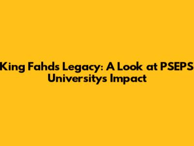 King Fahd's Legacy: A Look At PSEPS University's Impact