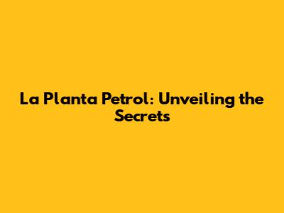 La Planta Petrol: Unveiling The Secrets