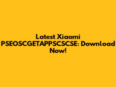 Latest Xiaomi PSEOSCGETAPPSCSCSE: Download Now!