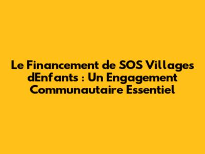 Le Financement de SOS Villages d'Enfants : Un Engagement Communautaire Essentiel