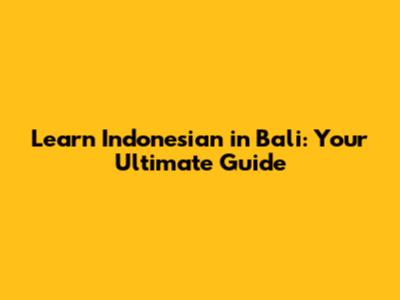 Learn Indonesian In Bali: Your Ultimate Guide