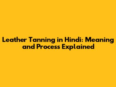 Leather Tanning In Hindi: Meaning And Process Explained