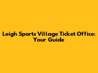 Leigh Sports Village Ticket Office: Your Guide
