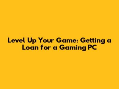 Level Up Your Game: Getting A Loan For A Gaming PC