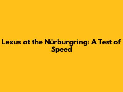 Lexus At The Nürburgring: A Test Of Speed