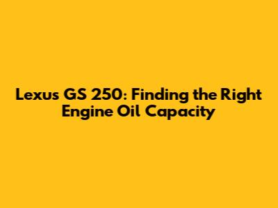 Hey guys! Let's dive into the specifics of maintaining your Lexus GS 250, focusing on a crucial aspect: engine oil capacity. Knowing the correct oil capacity ensures your engine runs smoothly and efficiently, preventing potential damage and prolonging its life. This guide will walk you through everything you need to know to keep your GS 250 in top condition.