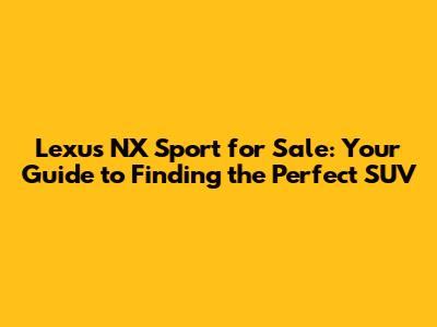 Where to Find a Lexus NX Sport for Sale
