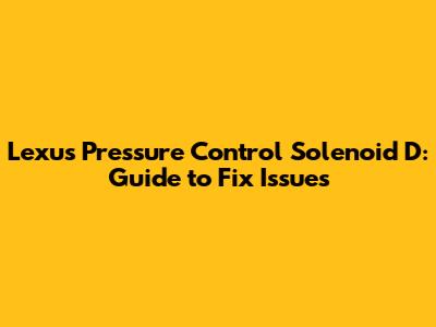 Lexus Pressure Control Solenoid D: Guide To Fix Issues