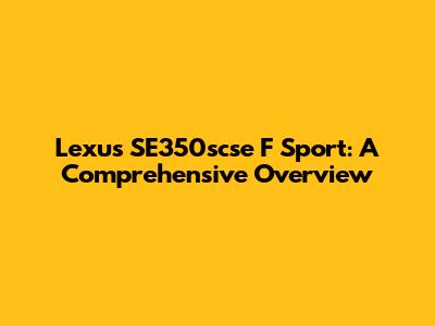 Lexus SE350scse F Sport: Review, Specs, And Performance