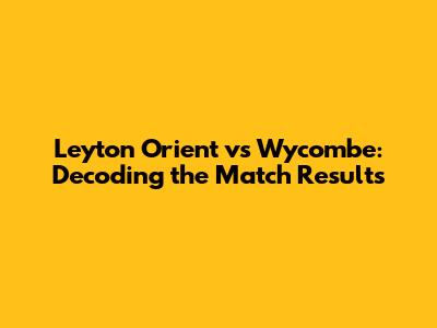 Leyton Orient Vs Wycombe: Match Results & Analysis