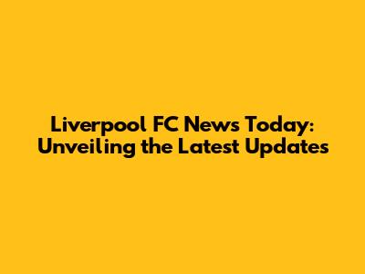Liverpool FC News Today: Latest Updates & Insights